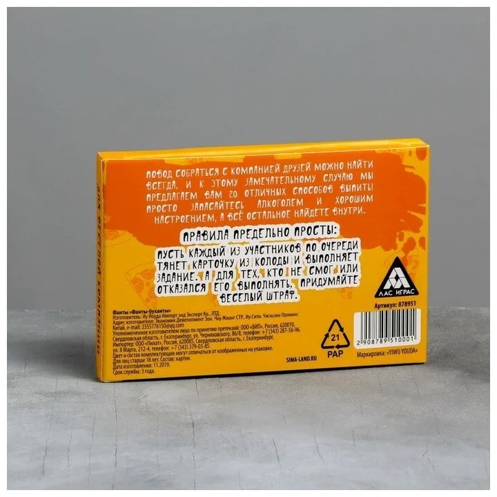 Купить игра для компании "фанты буханты" 20 карт от 100 руб. с доставкой до пункта выдачи в Исилькуле. Интернет магазин ДекаМаркет. Оплата при получении.