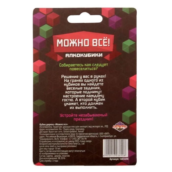 Купить кубик "можно все", алкокубики для принятия решений от 60 руб. с доставкой до пункта выдачи в Исилькуле. Интернет магазин ДекаМаркет. Оплата при получении.